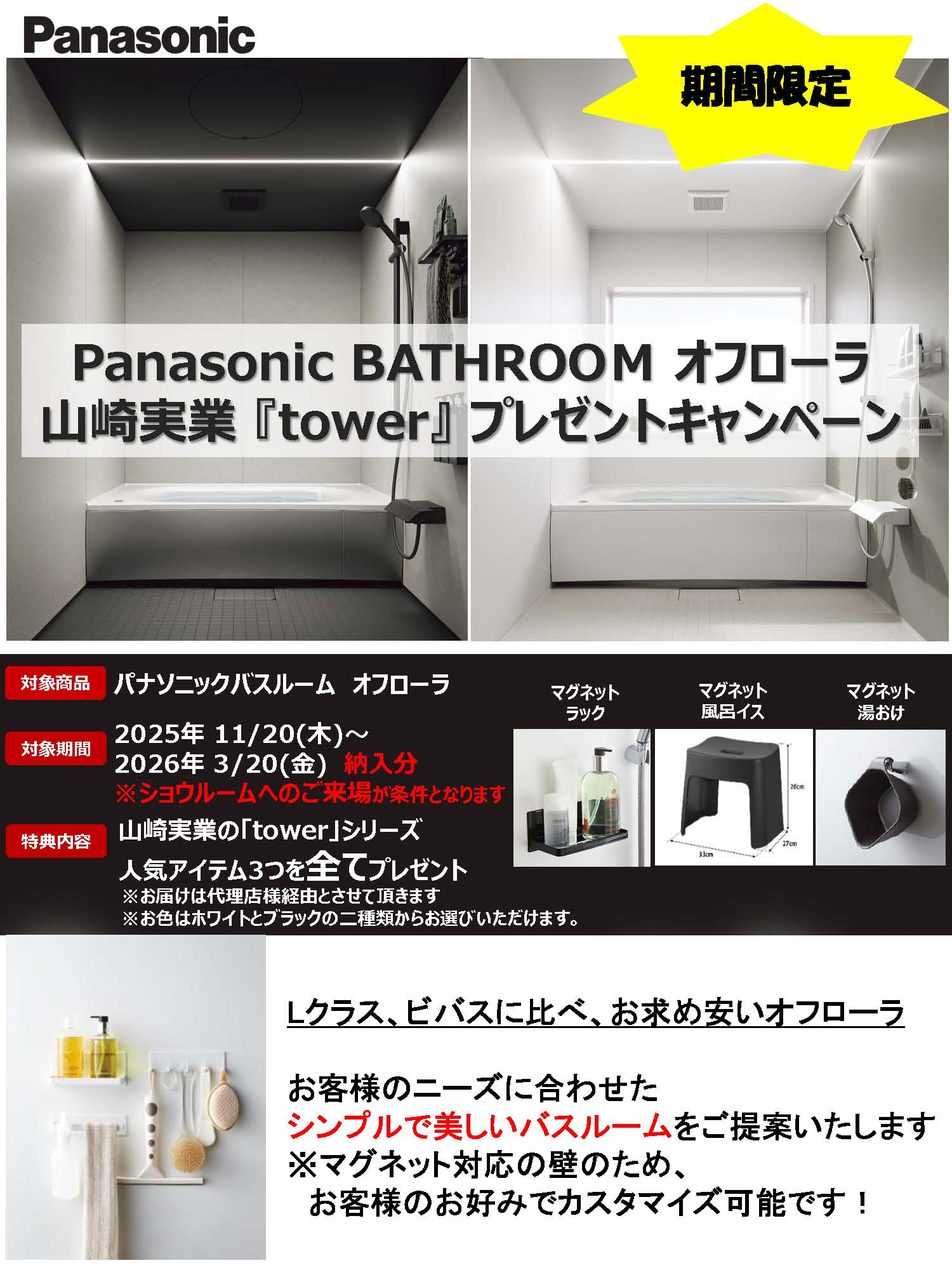 Panasonic BATHROOM オフローラ 山崎実業『Tower』プレゼントキャンペーン